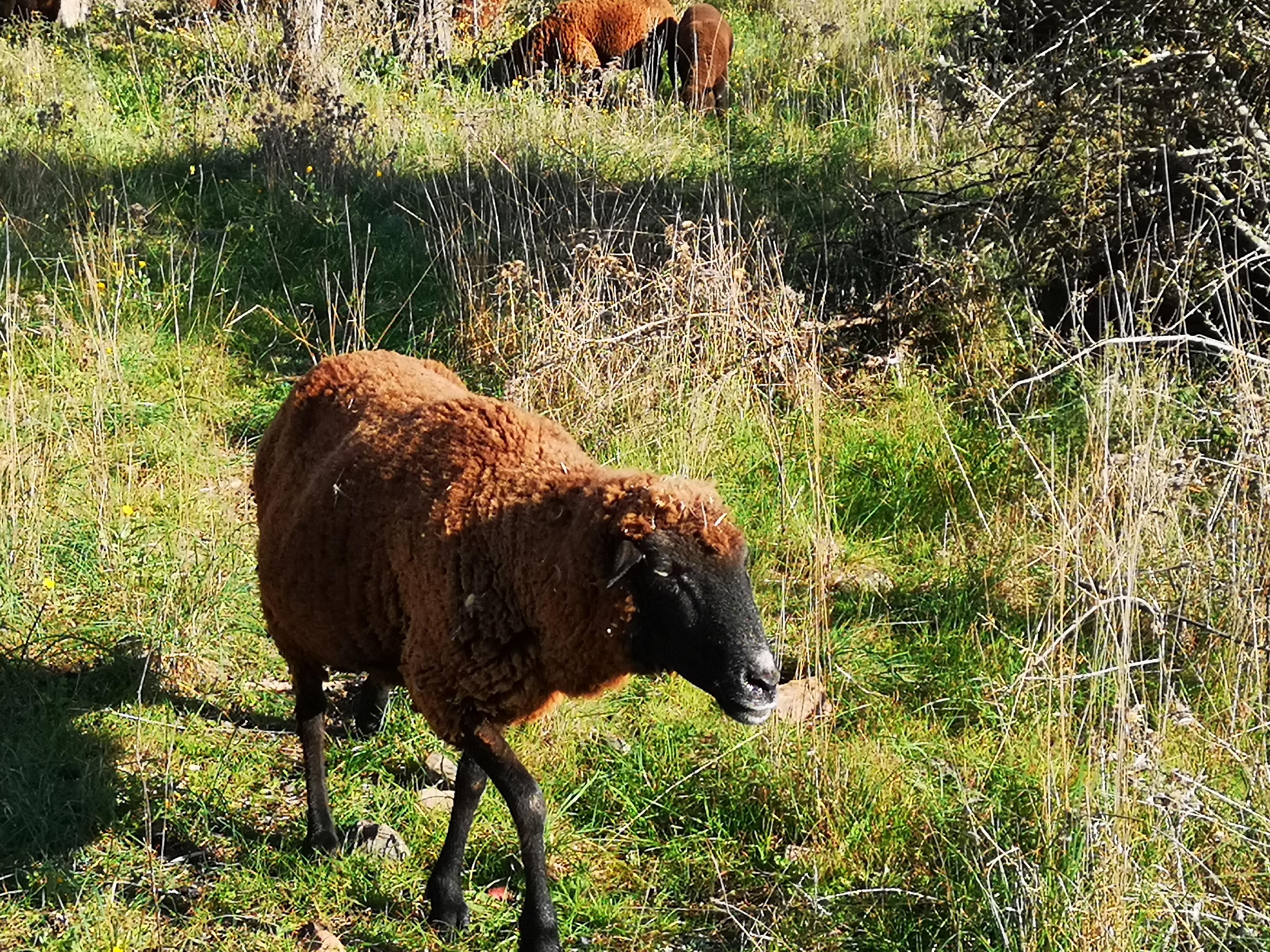 La estrella del proyecto es el rebaño de merinas negras. Ellas son su mejor herramienta, ovejas de pasto que van rotando de parcela en parcela para hacer el trabajo de desbroce y abono. "Es una experiencia pionera. Nuestro rebaño es un "rebaño de innovación". No nos lo planteamos como un modo de vida, aunque sí que intentamos que sea sostenible económicamente. Procuramos que sirva de innovación para la gestión del territorio, y también como innovación social porque lo gestionamos colectivamente entre un grupo de voluntarios, y entre generaciones -Miguel, el pastor que ahora se encarga de las ovejas está jubilado, hay gente joven, familias...-. Nuestro slogan es "revitalizar la comunidad y la tierra, mejorar el medioambiente y las relaciones sociales." Pero también innovación en cuanto al modelo de pastoreo a través del Manejo Holístico, una forma de trabajar la tierra, ideada por el naturalista y ganadero de Zimbawe Allan Savory, a través de acciones encaminadas a la regeneración del ecosistema y de las sociedades. El Savory Institut está desarrollando un proyecto a nivel global para implementar el manejo holístico en 1 billón de hectáreas para 2025, de las cuales 250.000 hectáreas cubrirán la Península Ibérica a través de la asociación sin ánimo de lucro aleJAB, su agente ejecutor en la península.